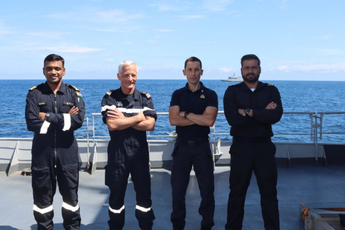 During the exercise, Indian Navy’s INS Sumedha, an Offshore Patrol Vessel, was joined by three EU Member States’ ships in the Gulf of Guinea: Italian Navy Ship ITS Foscari, French Navy Ship FS Ventôse, and Spanish Navy Ship Tornado. The four ships practiced a series of tactical manoeuvers in international waters off the coast of Ghana, including a boarding exercise, a flying exercise using the helicopters embarked on French Ship Ventôse and Indian Naval Ship Sumedha, and transfer of personnel between ships.
