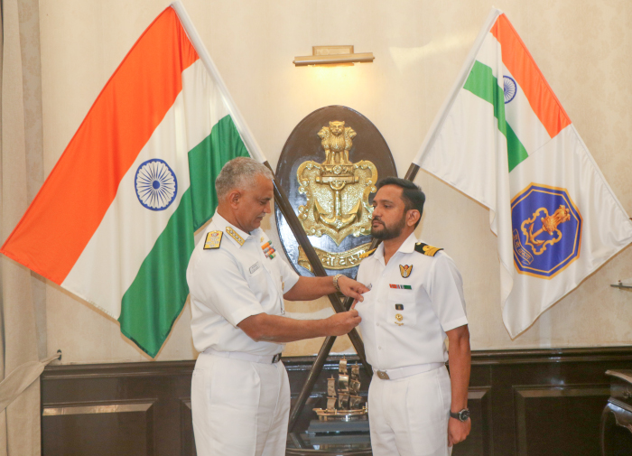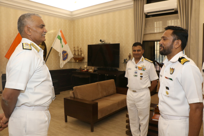 Adm R Hari Kumar, the Chief of the Naval Staff (CNS) presented the maiden ‘NIB’ (Navy’s Intellectual Beacon) to Cdr M Arun Chakravarthy during a brief Presentation Ceremony at his chamber. Cdr M Arun Chakravarthy is the winner of Indian Navy’s Sardar KM Panikkar ‘NIB’ essay competition which has been introduced to promote reading, writing and thinking skills amongst the Naval community. VAdm K Swaminathan, Chief of Personnel and Cmde G Rambabu, Commodore (Naval Education) were also present on this occasion.