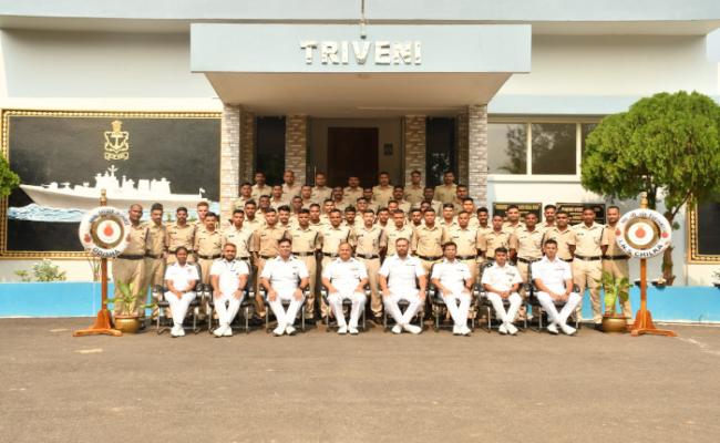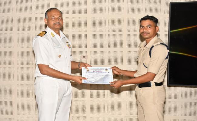 51 Central Industrial Security Force CISF personnel successfully underwent 50th Marine Orientation Course at INS Chilka from 16-26 Oct 2023. During the course, CISF personnel were trained on Naval subjects like collision avoidance rules, navigational equipment, chart work, boat work, survival at sea, basic seamanship, or VBSS operation, damage control and firefighting. In addition, regular sports activities were also conducted for trainees during the course. Constable Khem Chand and Constable Abhishek Singh stood first and second respectively in the course. Commodore NP Pradeep Commanding Officer, INS Chilka awarded certificates to meritorious trainees.
