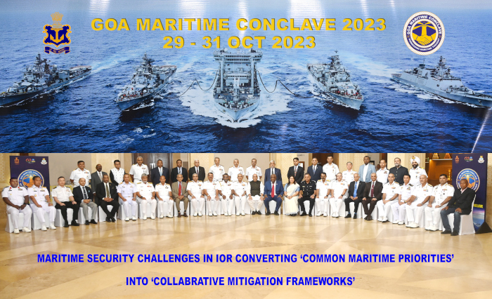 The fourth edition of the Goa Maritime Conclave (GMC) was hosted by the Indian Navy from 29 – 31 Oct 2023 under the aegis of the Naval War College, Goa. The conclave’s theme “Maritime Security in the Indian Ocean Region: Converting Common Maritime Priorities into Collaborative Mitigating Frameworks” aptly highlights the present and necessary imperative for ‘harmonising and collaborating capacities and capabilities’ in the Indian Ocean Region (IOR) towards realising our Hon’ble Prime Minister Shri Narendra Modi’s vision of SAGAR (Security and Growth for All in the Region).