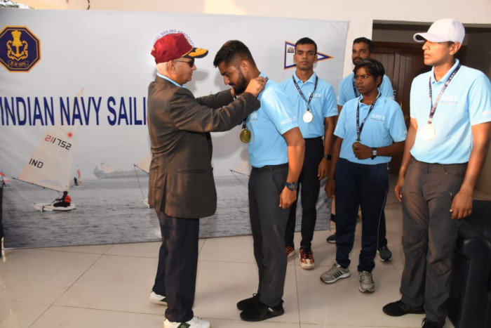 The Chief Guest, Vice Admiral Rajaram Swaminathan, DGNP (Mumbai) presented medals to the winners during the closing ceremony held on 09 Nov 23. He complimented the naval yachtspersons for setting high standard and displaying excellent sailing skills in the challenging conditions at sea.