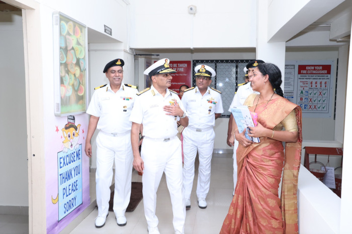 On this occasion, Chairman NES presented Rolling Trophies to schools that excelled in academics during the last academic year. Addressing the delegates, Chairman NES appreciated the role played by NCSs in imparting quality education to children of naval personnel. He exhorted all stakeholders to continue investing in state-of-the-art infrastructure and faculty development, to facilitate a conducive learning environment that motivates children to imbibe life skills and excel in academics and co-curricular activities. A guided tour of Navy Children School Porbandar was also organised for the delegates.