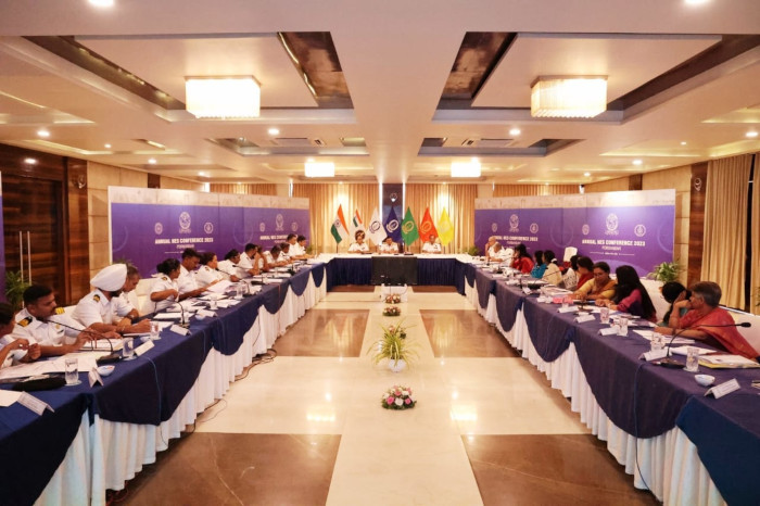 The Annual Navy Education Society (NES) Conference 2023 was held at Headquarters Gujarat, Daman and Diu Naval Area, Porbandar on 09 - 10 November 2023, chaired by Vice Admiral Krishna Swaminathan, Chief of Personnel and Chairman NES. The conference was also attended by Commodore G Rambabu, Commodore (Naval Education) and Vice Chairman NES and academic as well as administrative leadership of Navy Children Schools across the country. The Executive Committee, Management Advisory Committee and Academic Advisory Committee meetings held as part of the conference deliberated policy framework for Naval Schools with specific impetus to implementation of National Education Policy (NEP) 2020. For the first time ever, representatives of Naval Kindergartens from various Naval Stations also took part in the conference.