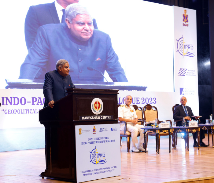 The “Indo-Pacific Regional Dialogue 2023” (IPRD-2023), the three-day annual apex-level regional strategic dialogue of the Indian Navy, commenced in New Delhi on 15 Nov 23. Shri Jagdeep Dhankhar, the Hon’ble Vice President of India was the Chief Guest for the ‘Commemorative Session’, Smt Nirmala Sitharaman, the Hon’ble Minister of Finance and Corporate Affairs delivered the Special Address.