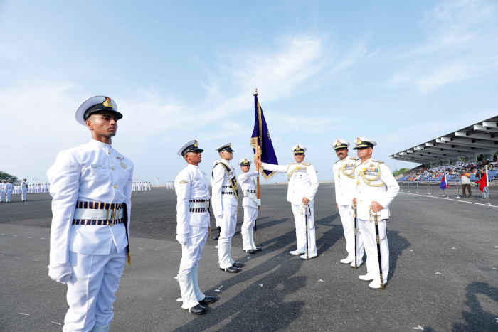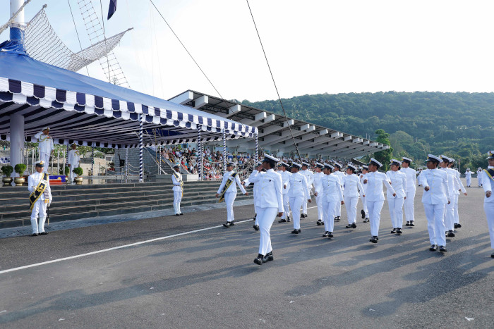 The CNS congratulated the trainees on parade for their impeccable turnout, smart drill and movements on parade. The Reviewing Officer graciously acknowledged the decision of parents for having encouraged and supported the trainees in choosing the noble profession of arms and thus committing to the service of nation. The Chief Guest commended the significant representation of first ever international women cadet from Mauritius. The integration of international trainees in the Indian Naval Academy not only strengthens India’s foreign cooperation but also highlights its world-class training facilities on a global stage.
