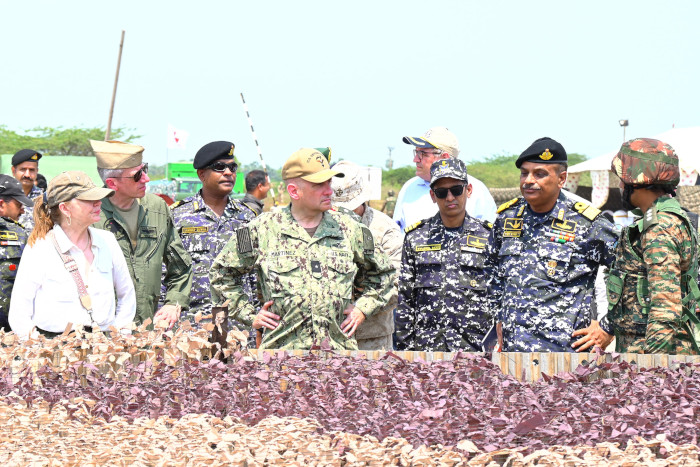 The participating units from the Indian Navy included a Landing Platform Dock, Landing Ship Tanks (Large) including their integral Landing Crafts and helicopters, Guided Missile Frigate and Long Range Maritime Reconnaissance Aircraft. The Indian Army was represented by one Infantry Battalion Group including mechanised forces and the Indian Air Force had deployed one medium lift aircraft, transport helicopter and the Rapid Action Medical Team (RAMT).