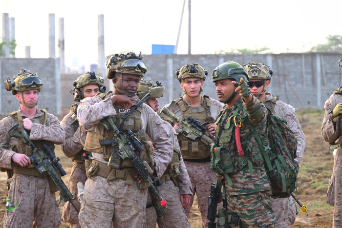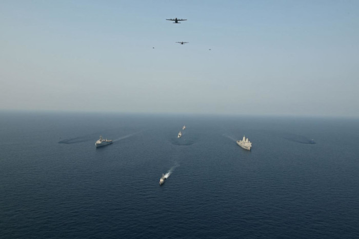 The US Task Force comprised of a US Navy Landing Platform Dock including its integral Landing Craft Air Cushions and helicopters, a Destroyer, maritime reconnaissance and medium lift aircraft, and also, US Marines.