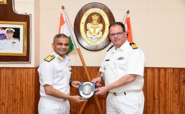 A Royal Netherlands Navy delegation led by Rear Admiral Paul Flos, Programme Director, International Naval Material Cooperation, Material & IT Command, visited HQWNC on 26 March 2024. They were given a briefing on WNC activities and later visited Naval Dockyard, Mumbai. The delegation also held discussions with Rear Admiral DK Goswami, Admiral Superintendent, ND (Mumbai) and Rear Admiral R Adhisrinivasan, CSO (Technical), HQWNC on technical and maintenance aspects of warships.