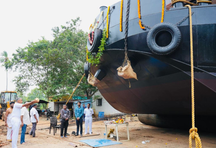 Launch of Missile Cum Ammunition (MCA) Barge, LSAM 10 (Yard 78) on 20 Nov 23 at M/s SECON Engineering Projects Pvt Ltd, Visakhapatnam